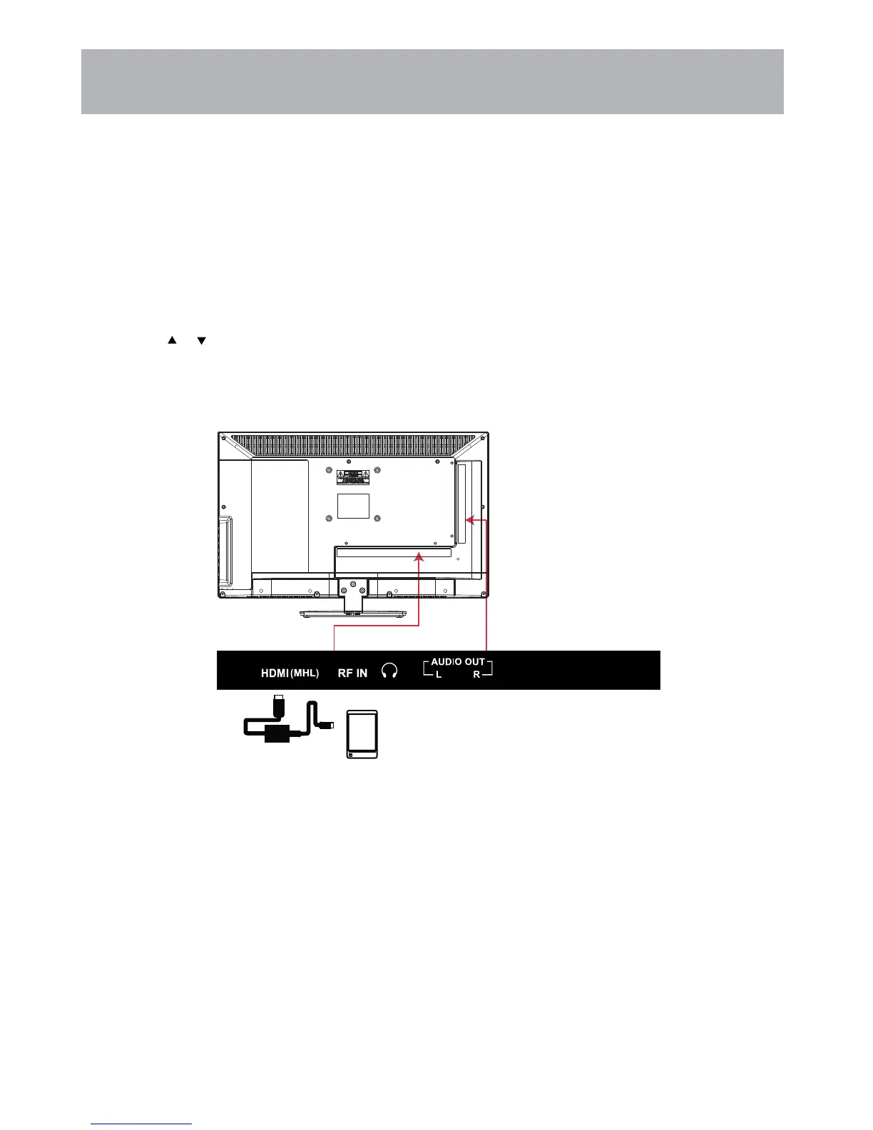 Connect a MHL cable (not provided) to the micro USB port on the device, then connect the other end