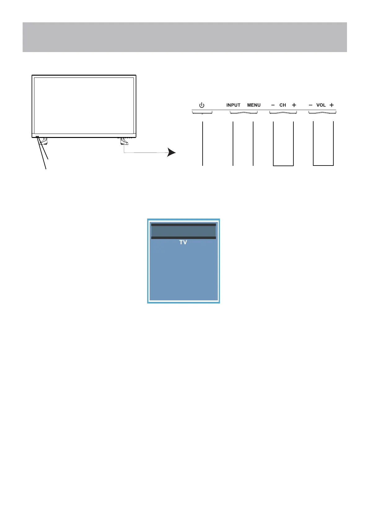 4. Channel (-CH+) - Press the CH- / CH+ buttons to select a channel in the TV mode.