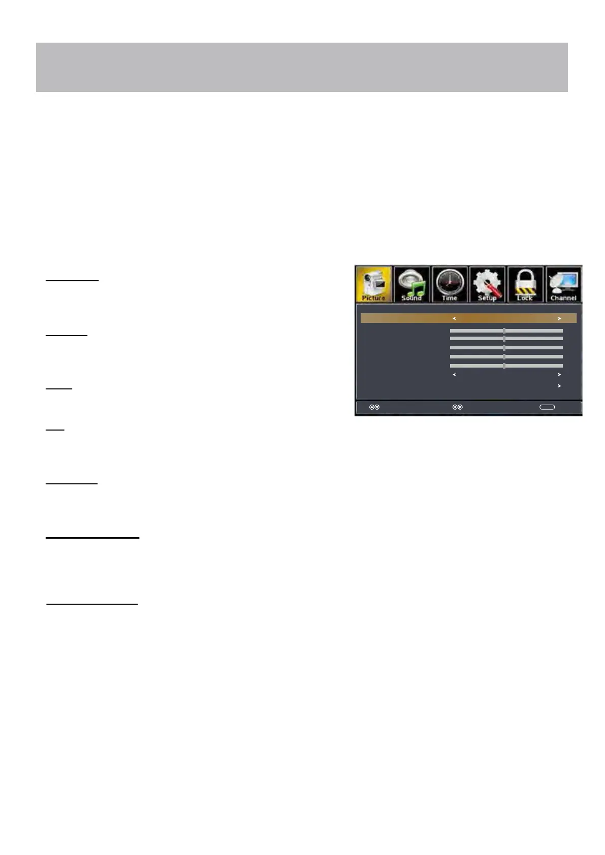 The Picture menu offers options to enhance and refine the picture displayed on your TV based on ambient room light