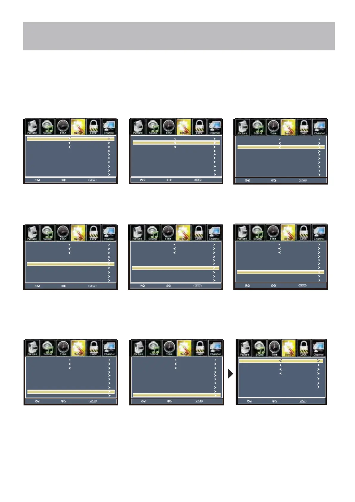Press the MENU button on the remote control. Navigate using arrow buttons to select Setup. Gain access to