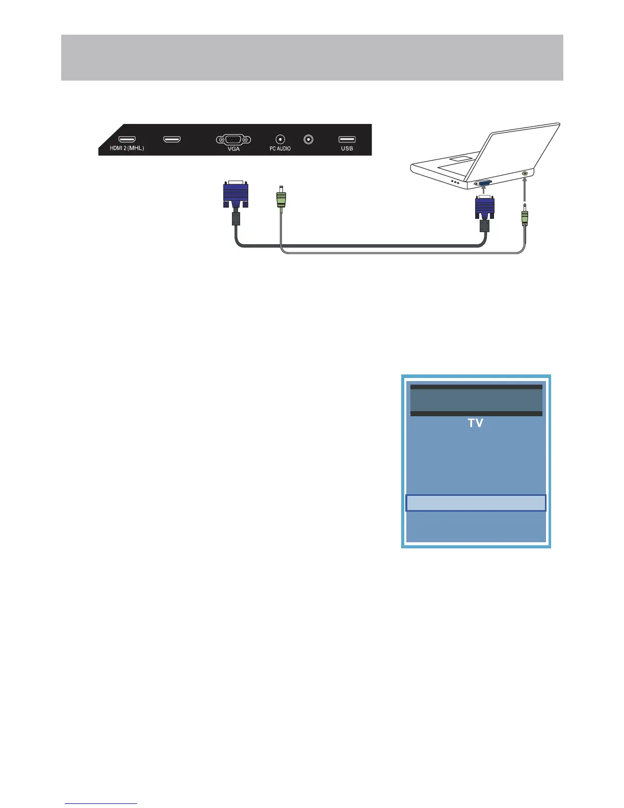 the “VGA” on the TV’s panel.