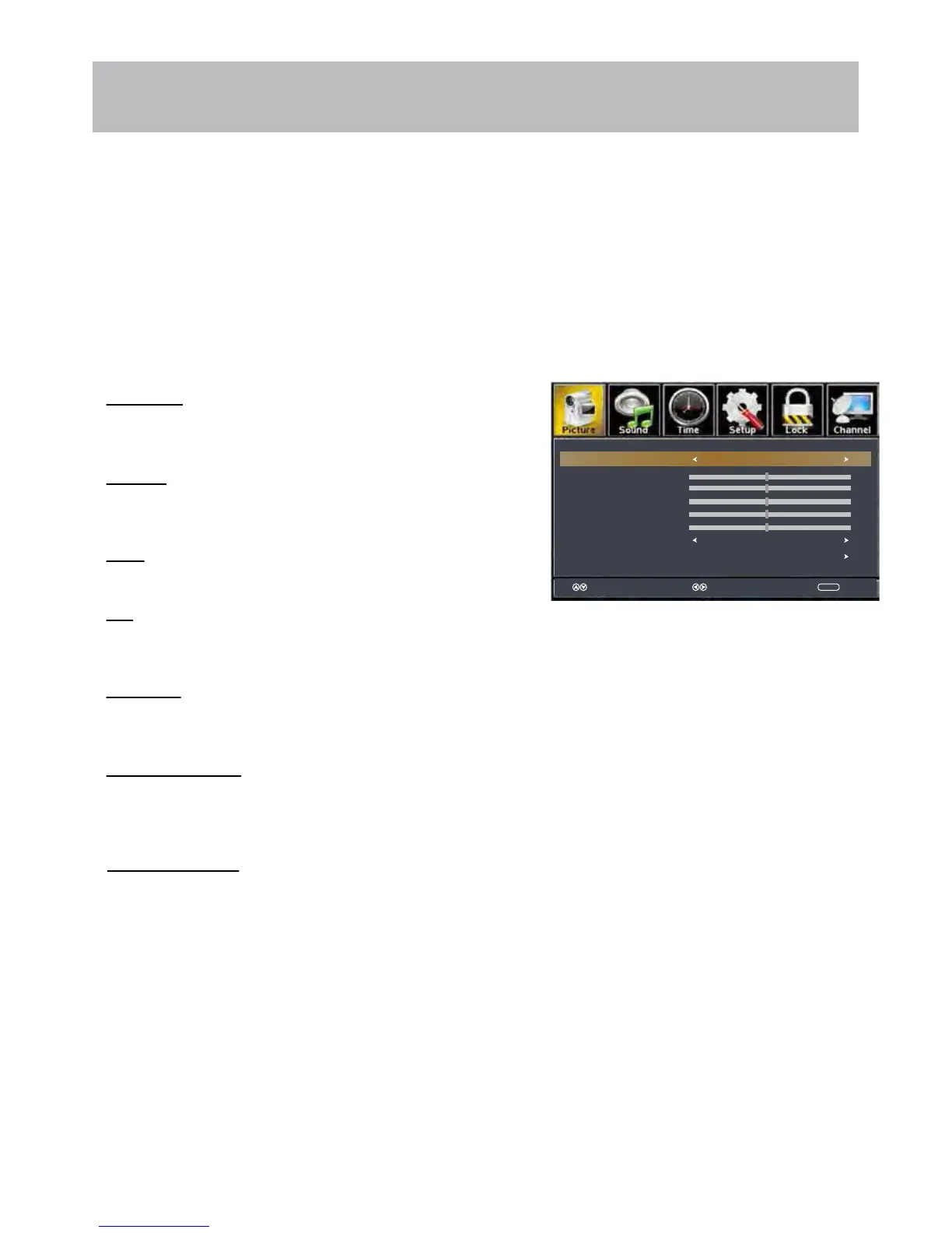 The Picture menu offers options to enhance and refine the picture displayed on your TV based on ambient room light