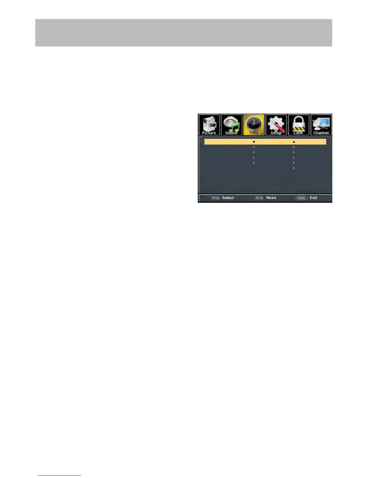 Press the MENU button on the remote control. Navigate using arrow buttons to select Time.