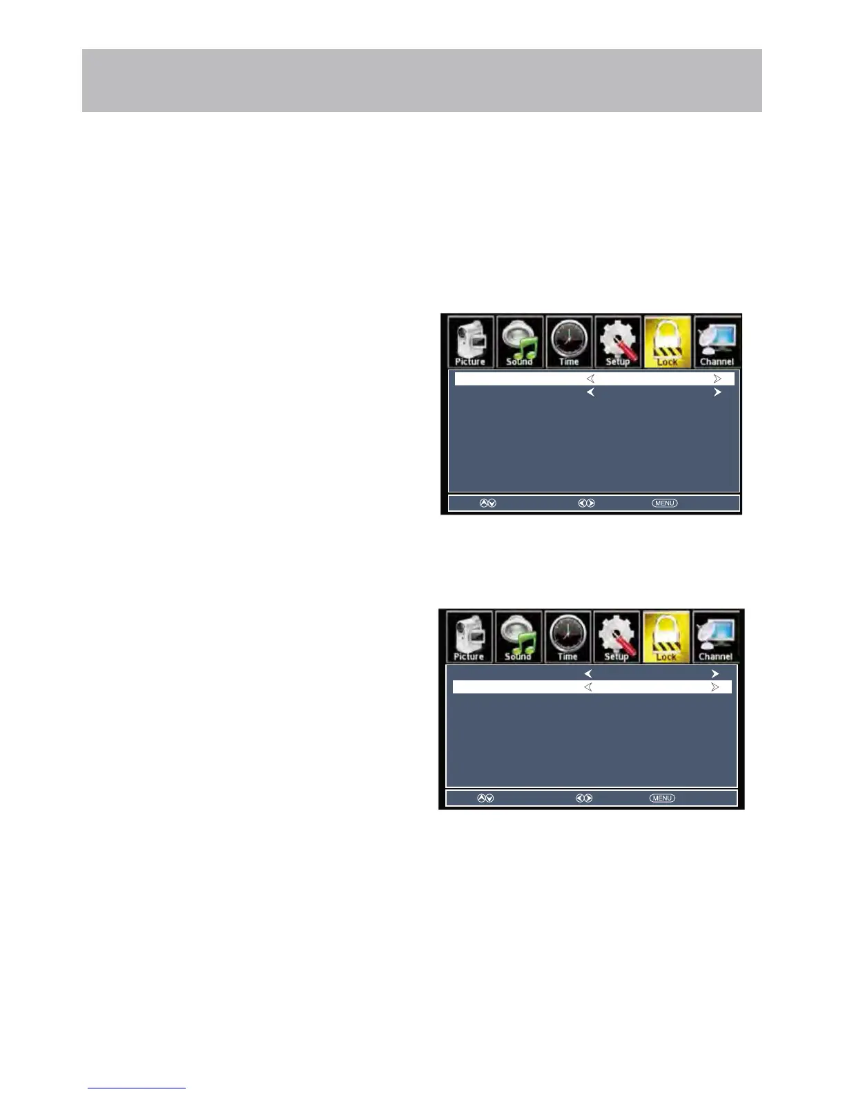Press the MENU button on the remote control. Navigate using arrow buttons to select Lock. Gain access to