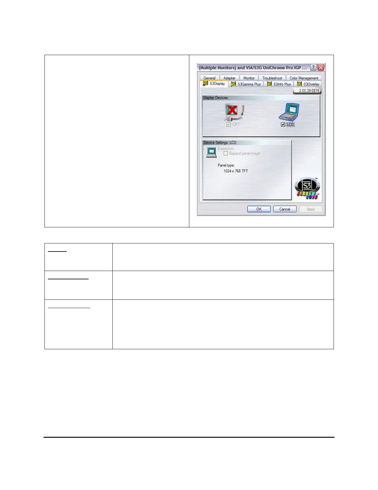 5. Click the S3 Display tab. The screen