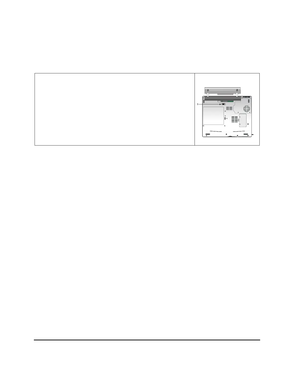 3. Slide the side battery latch (1) away from the battery. Continue to