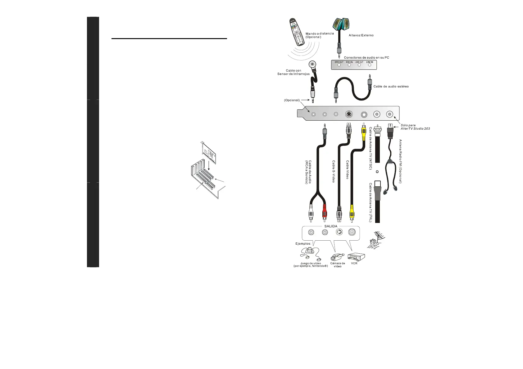 • Tarjeta de sintonizador y captura TV • Cable de audio estéreo