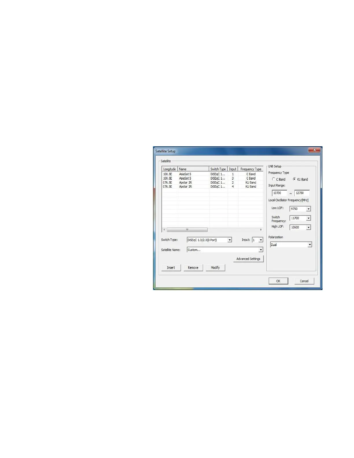 and leave Satellite Setup dialog