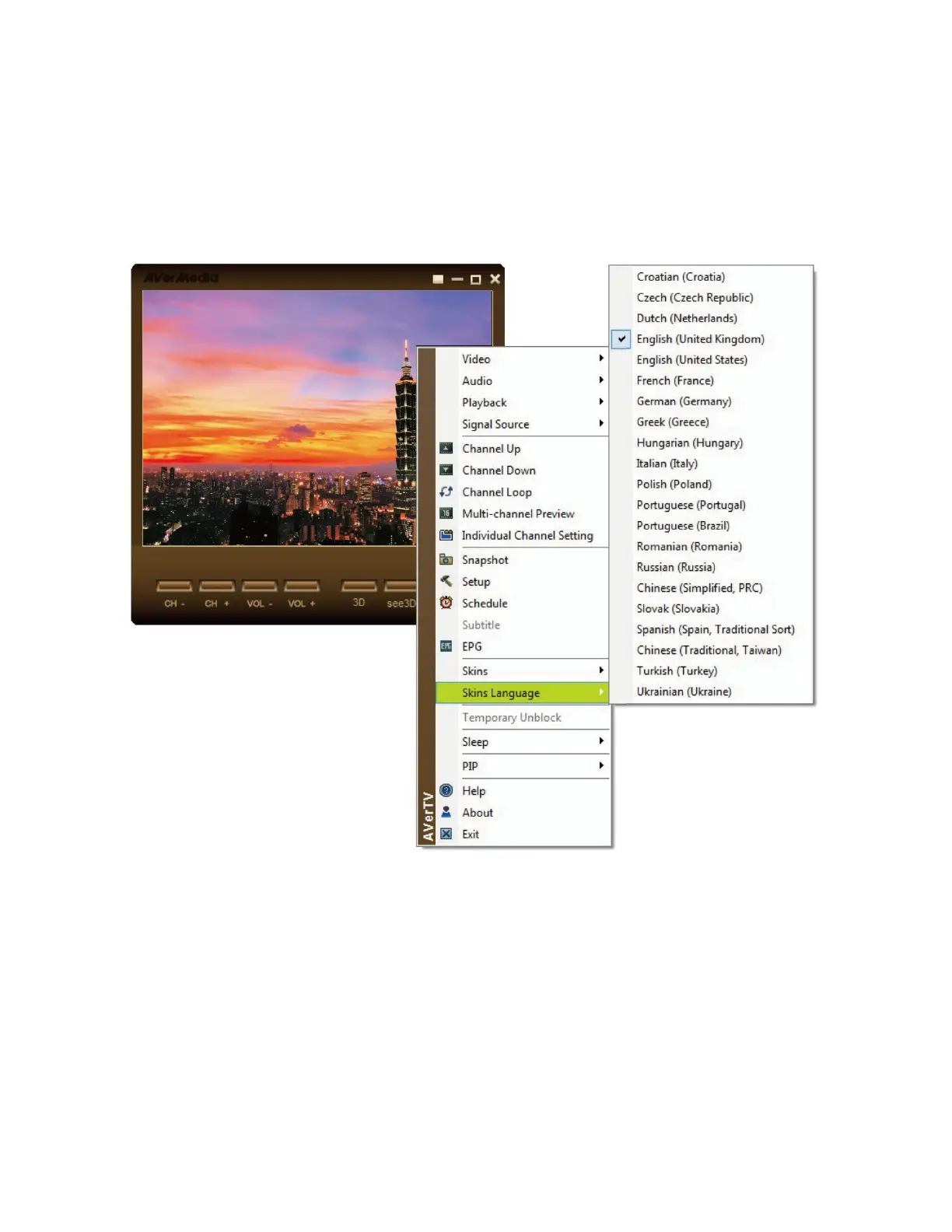 2. In the pop-up menu, point to Skins Language and choose the desired language.