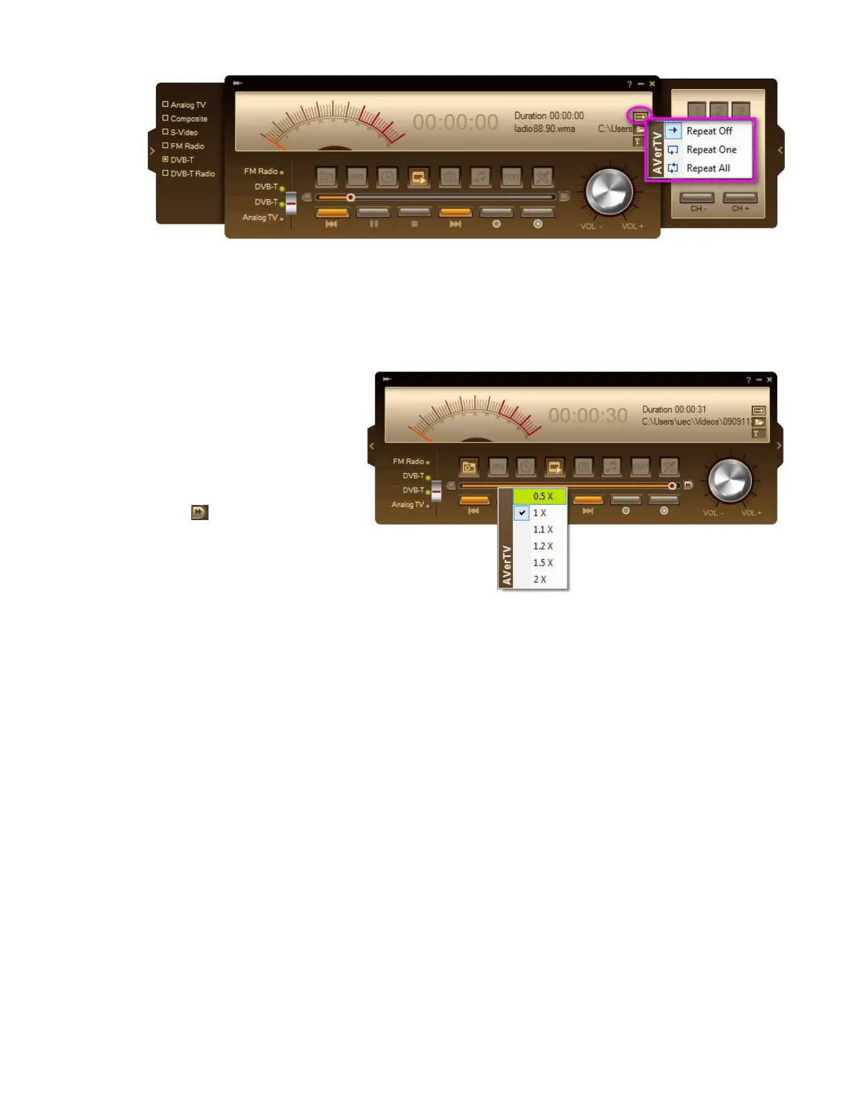 You can change the fast-forward playback speed when playing back the recorded video files: