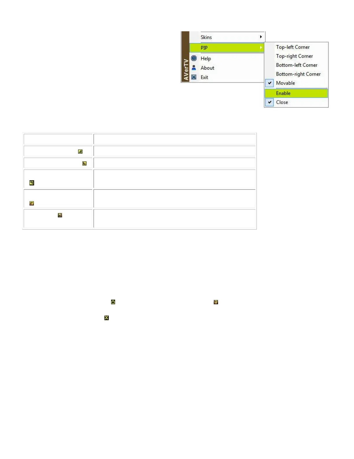 and the distance between the main window and the PIP window. To exit the PIP