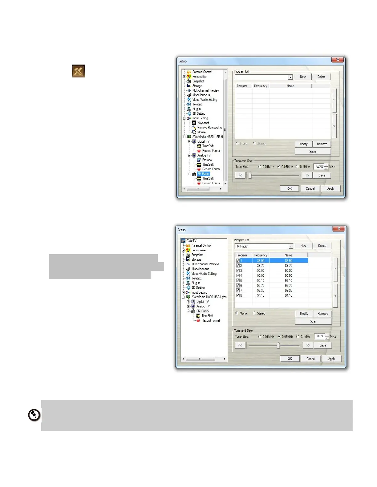 The application comes with a built-in FM frequency table for the country: Russia. To use the