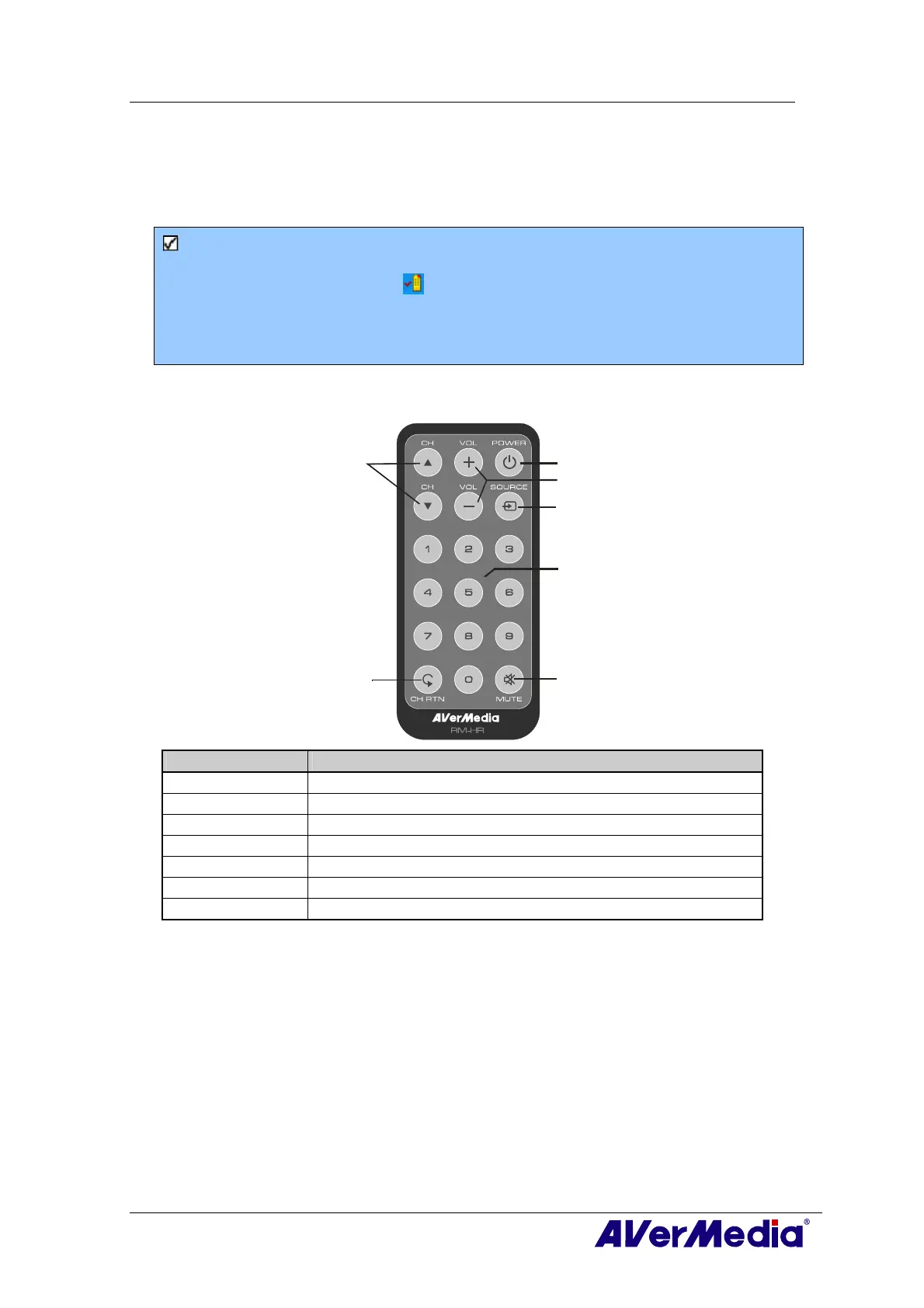 (The remote control can only be used on AVerMedia AVerTV 6 application.)