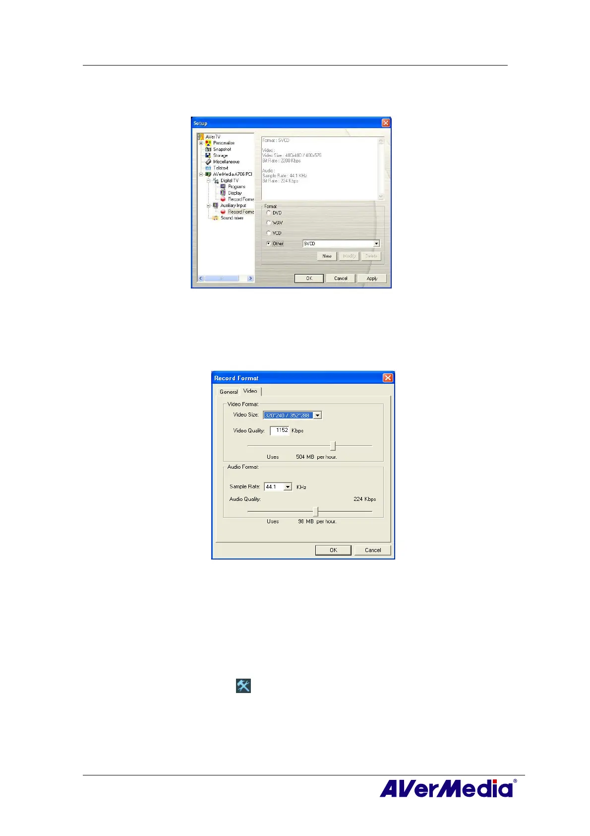 button and in the Setup dialog box, click Auxiliary Input icon on