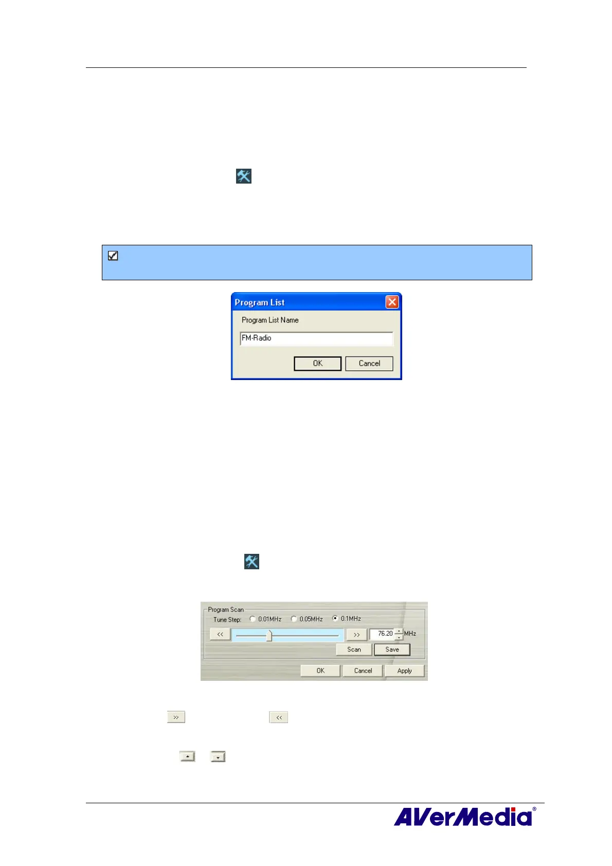 1. Click the Setup button and in the Setup dialog box, click AM/FM Radio icon on