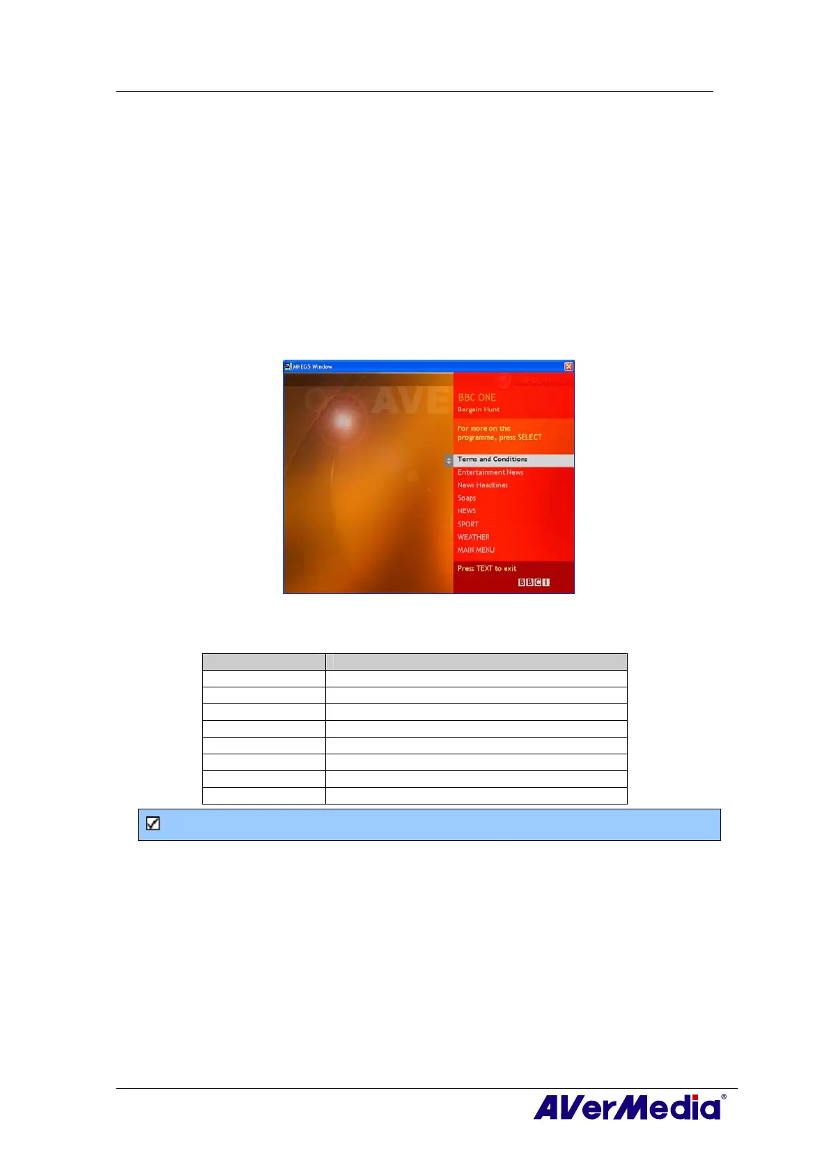 Note: MHEG-5 Support will only function in the UK.