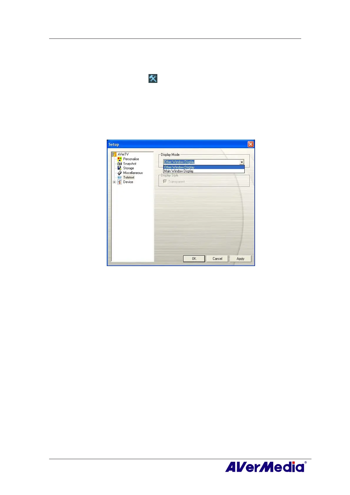 1. Click the Setup button and in the setup dialog box, click the Teletext icon in