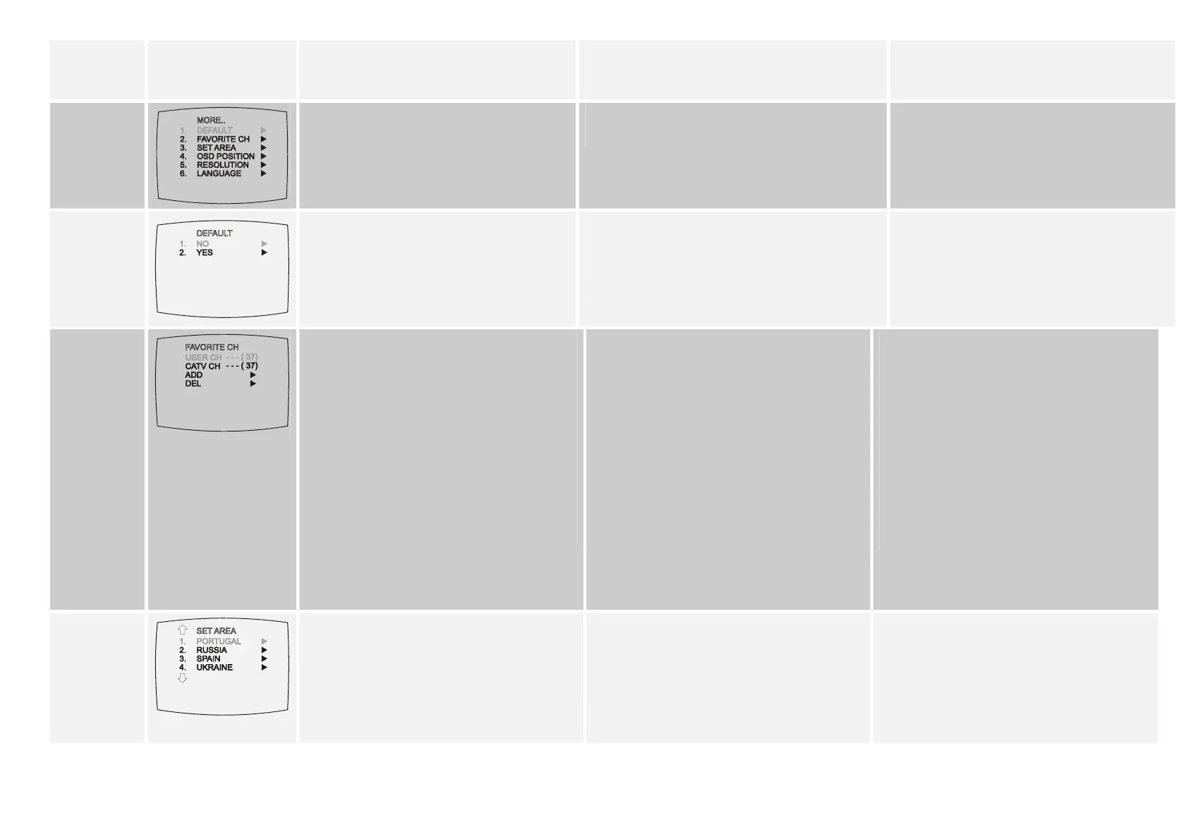 (USTAW OBSZAR) z listy pozycji MORE.., używając voľbu adekvátneho dostupného kanála v krajine,