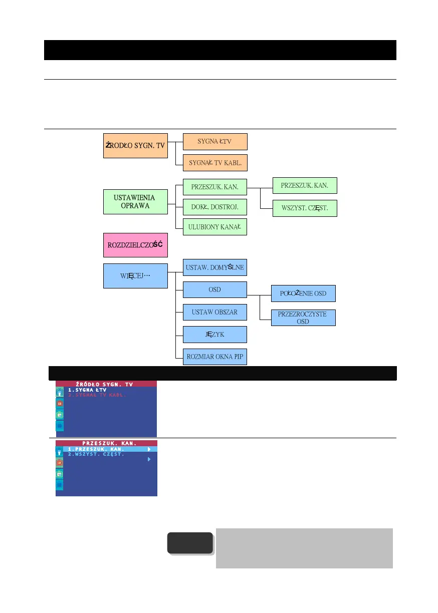 Przyciski CH▲ lub CH▼ służą do wyboru między opcją CH SCAN lub