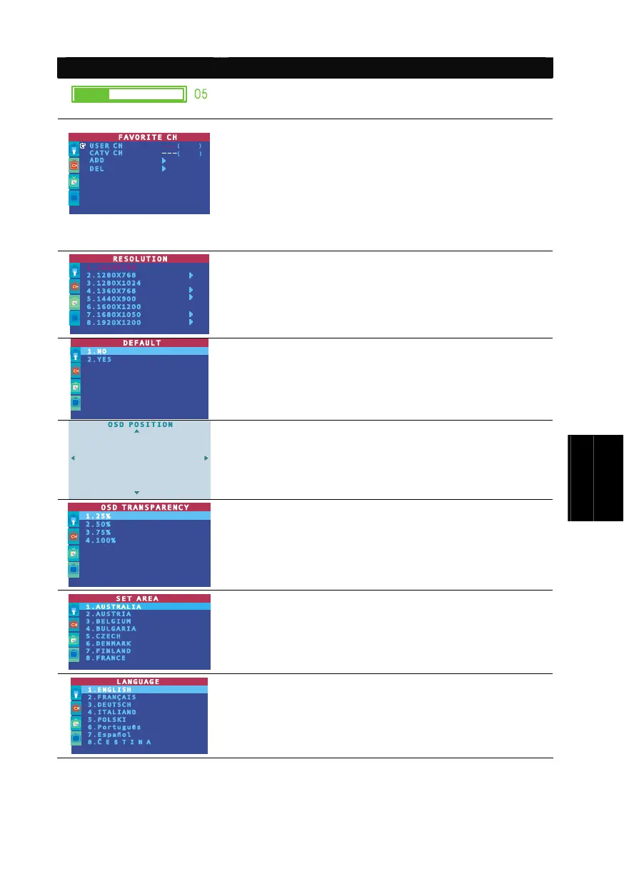 Pomocou tlačidiel CH▲ či CH▼ zvoľte rozlíšenie displeja a pokračujte