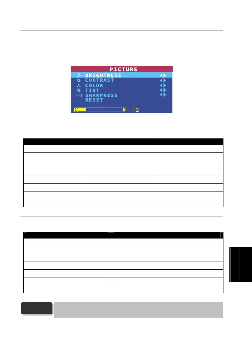 koristiti tipke CH▲ ili CH▼ za odabir željenih stavki u PICTURE izborniku, kao i tipke Vol◄ ili Vol ► za