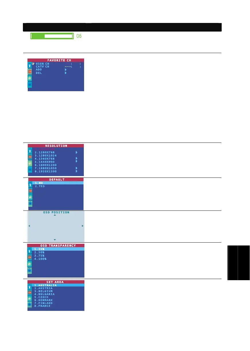 Koristite gumbe CH▲ ili CH▼ za izbor iz prozirnosti OSD (Ekranski