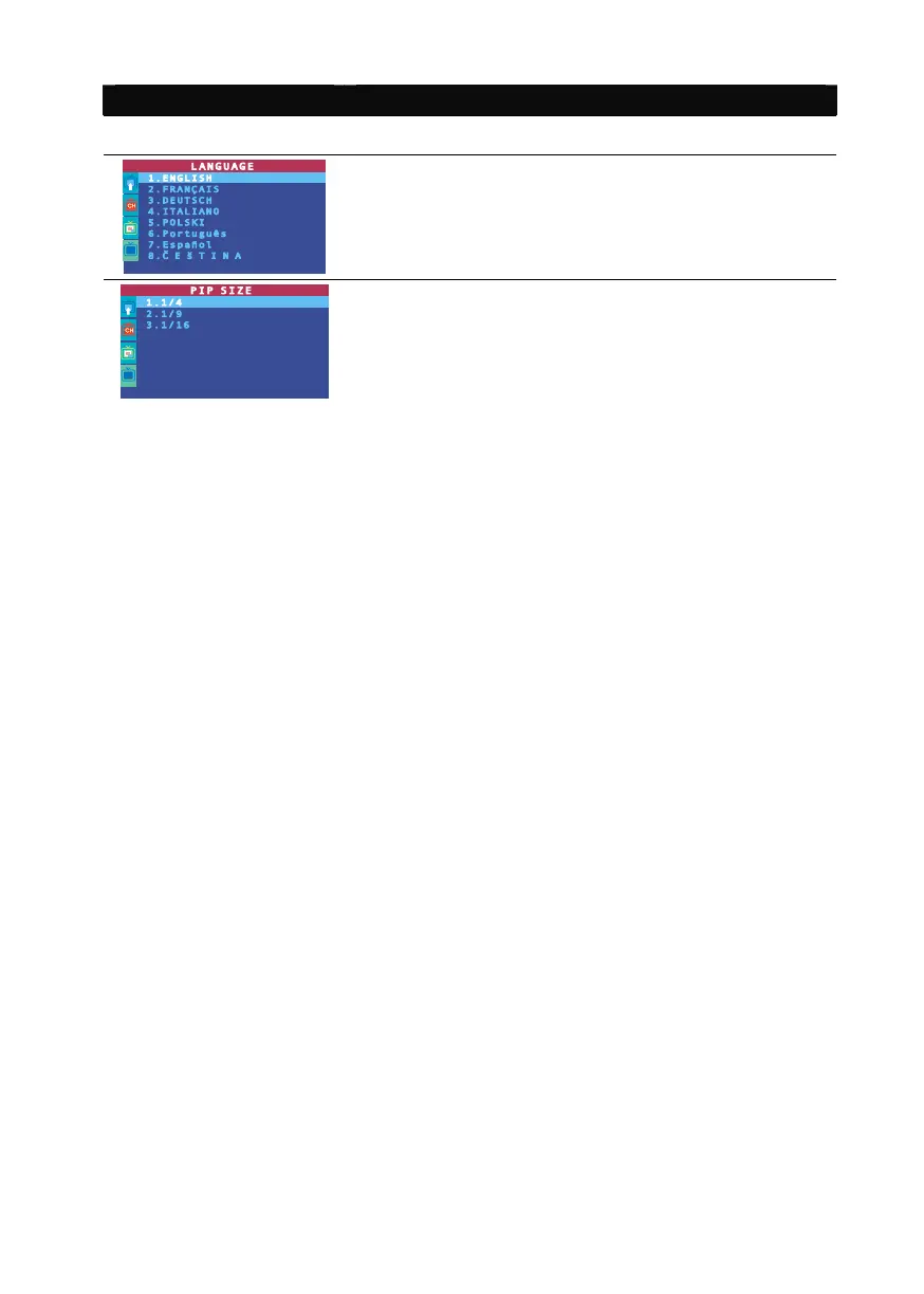 Koristite gumbe CH▲ ili CH▼ za izbor različitih veličina PIP (slike u