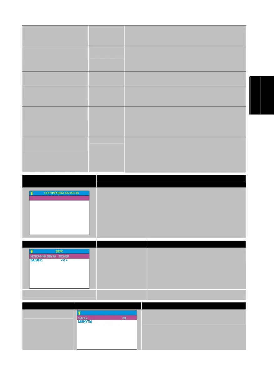 Меню ЗВУК Пункт меню Описание
