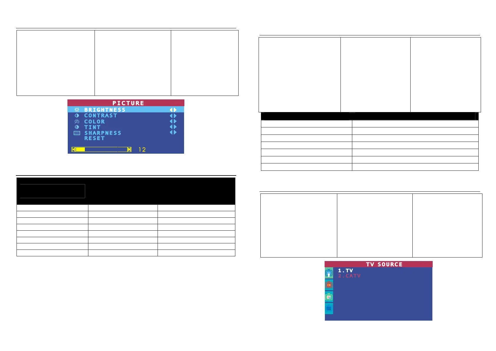 PICTURE menu; and the Vol◄
