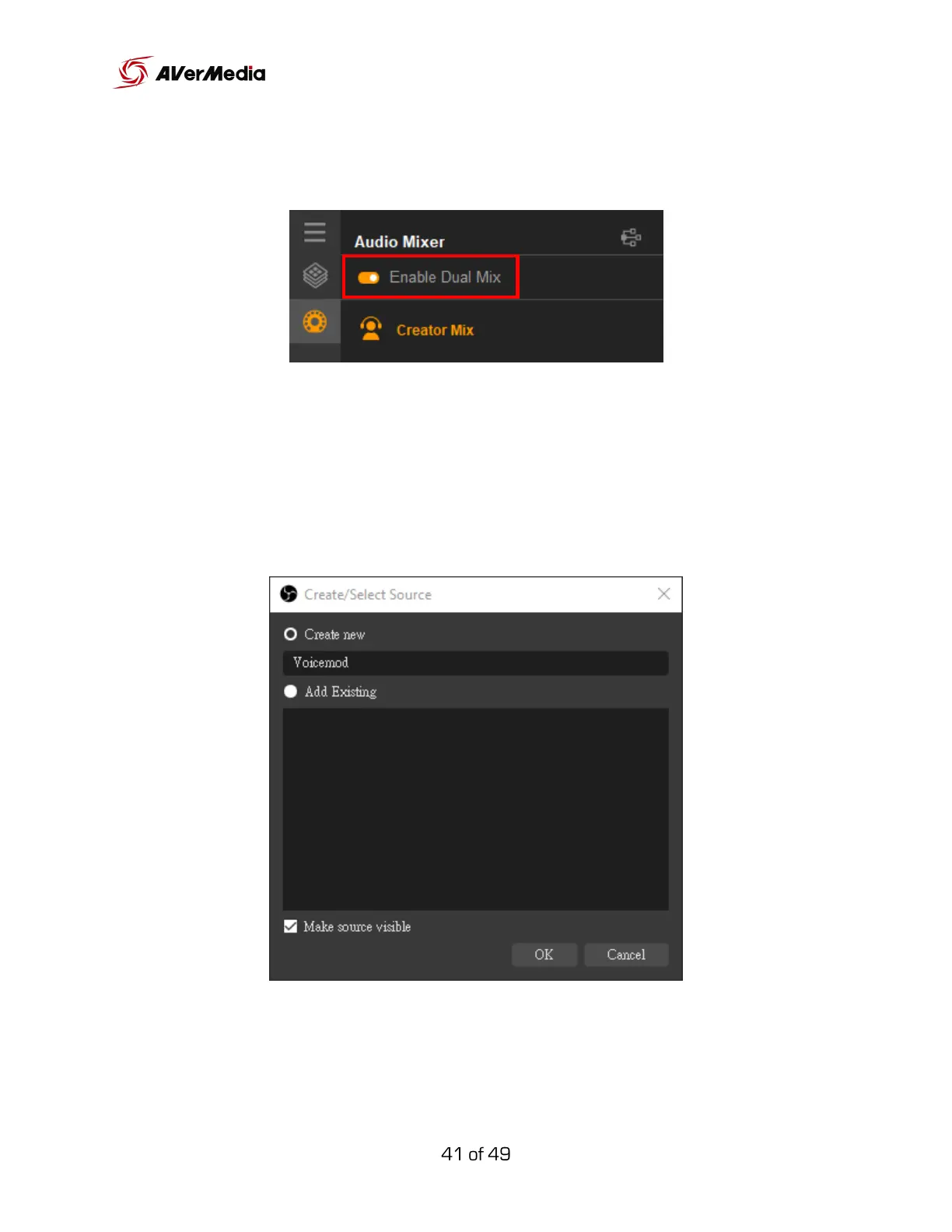 Go to Creator Central > Audio Mixer, and make sure Dual Mix is enabled.