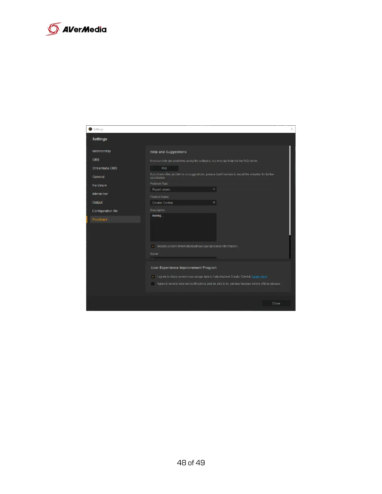 Central, please go to Settings > Feedback for instant FAQ and reporting