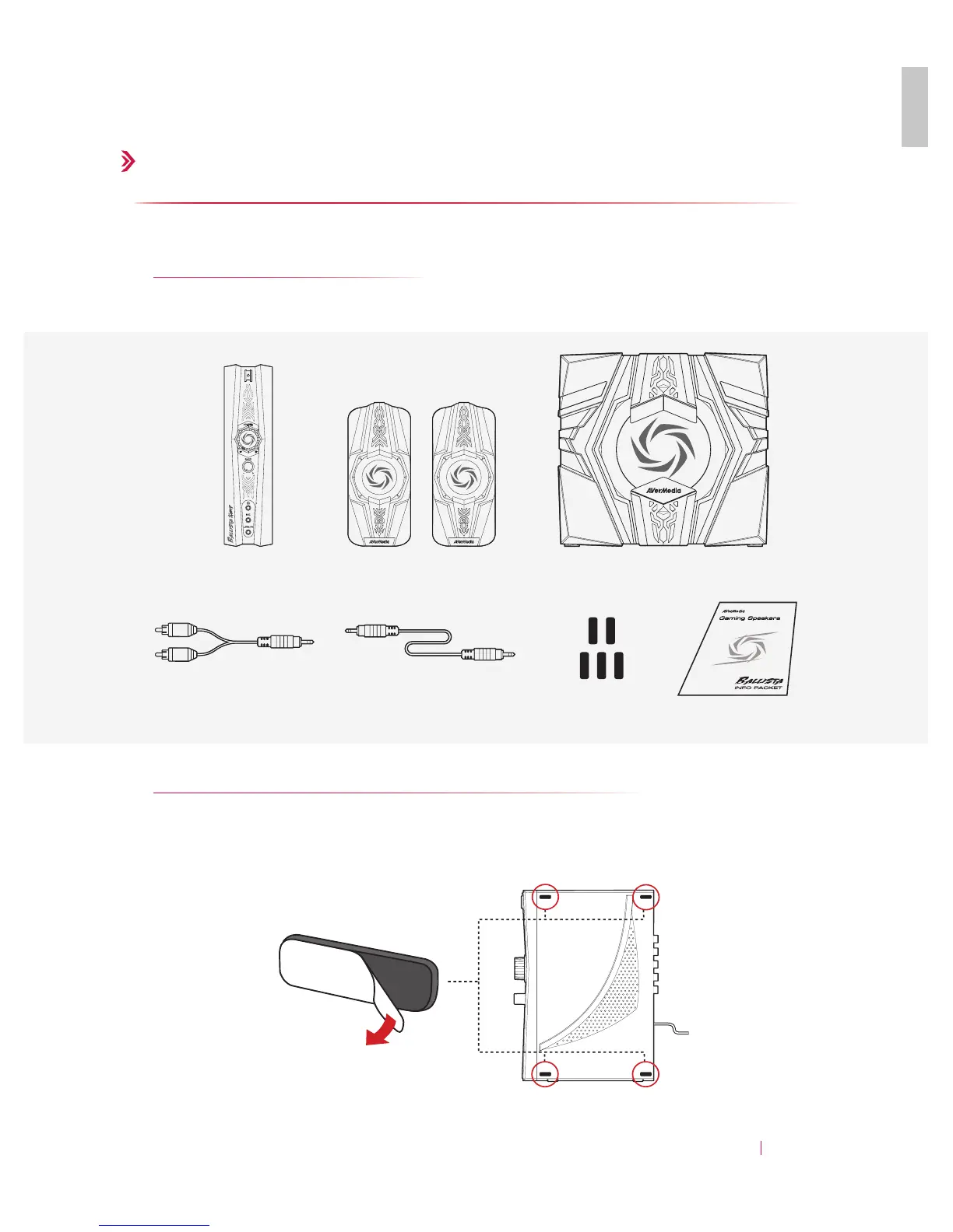 Avermedia Ballista Unity - Preparation; Inside The Box Contents; Attaching Rubber Feet