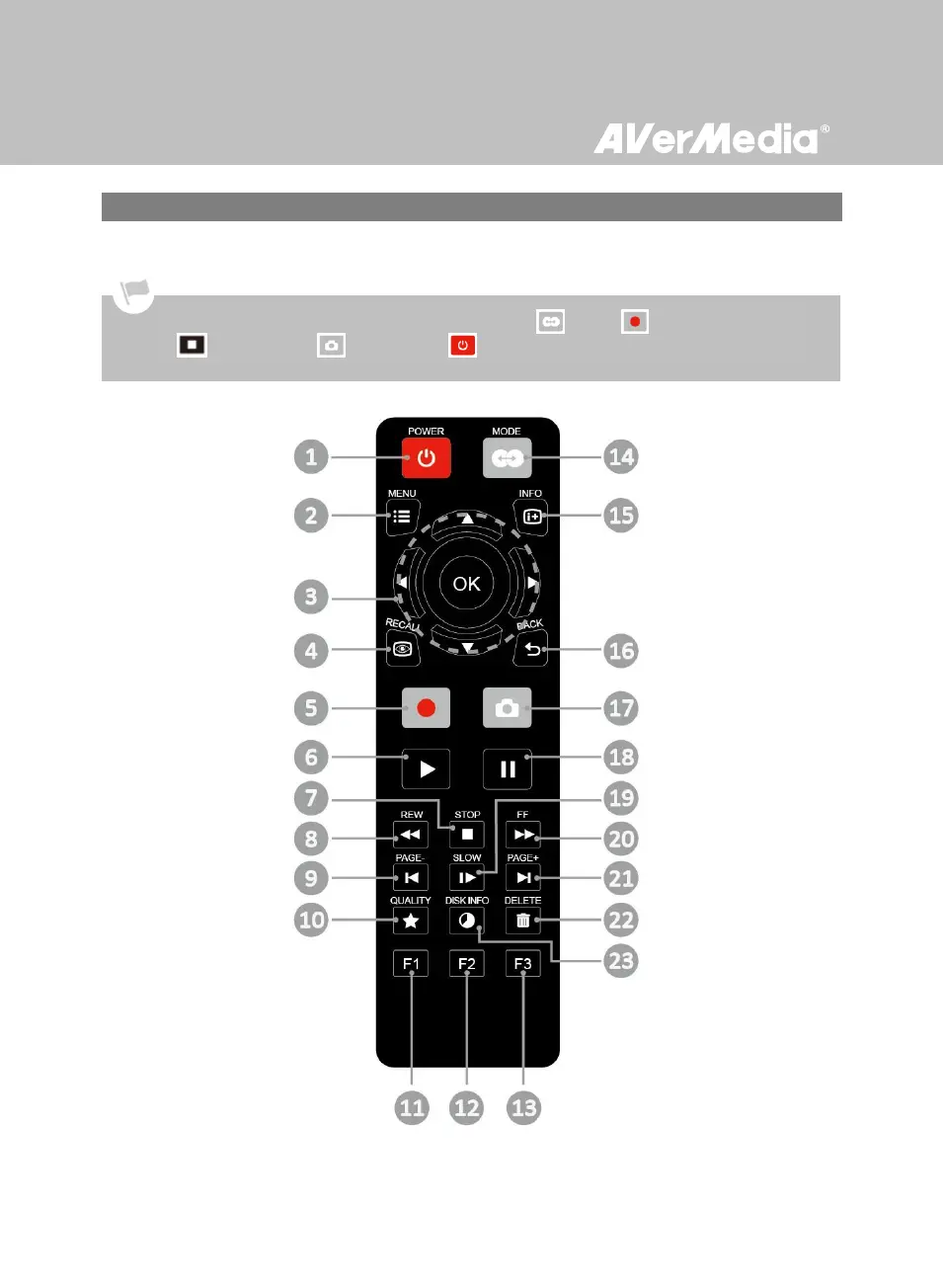 Avermedia C281 - Remote Control Guide; Remote Control Buttons and Functions