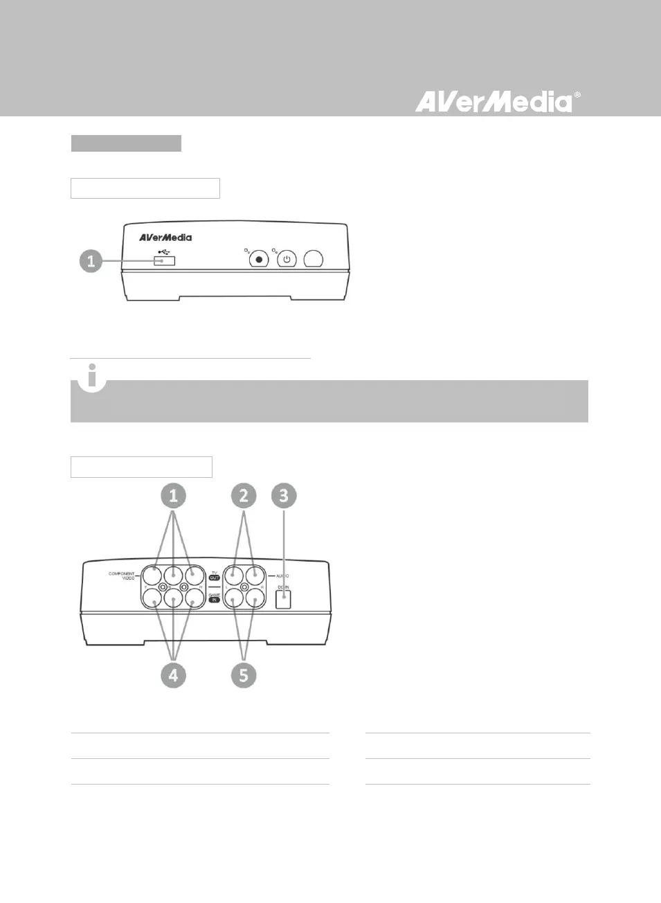 Avermedia C281 - 連接埠; 前視圖; 後視圖