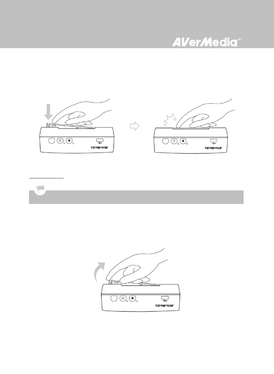 將手指放置於圖示位置並向下壓,直到聽見喀嚓聲為止。