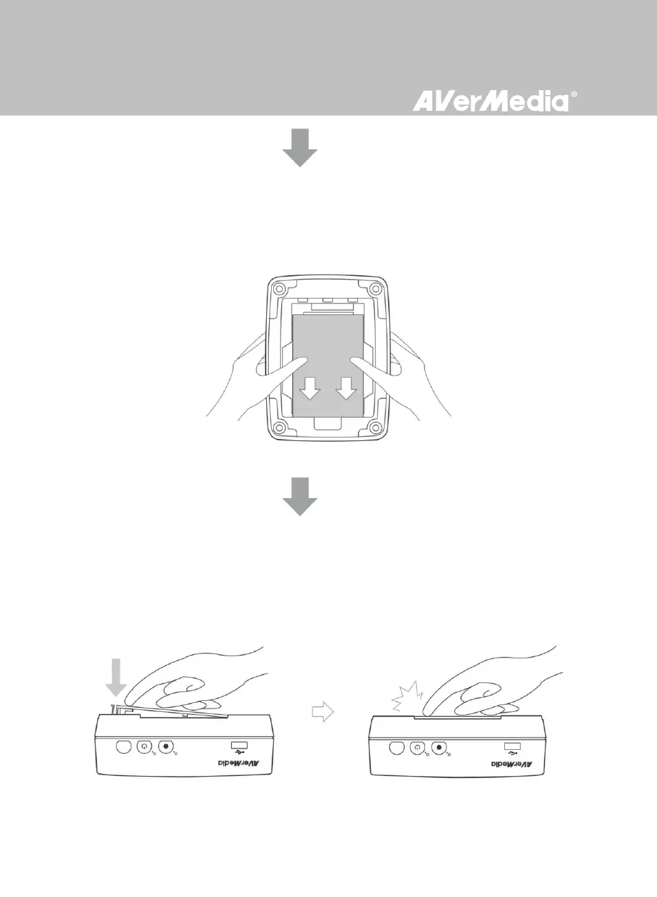 將手指置放於圖示位置並向下壓,直到聽見喀嚓聲為止。