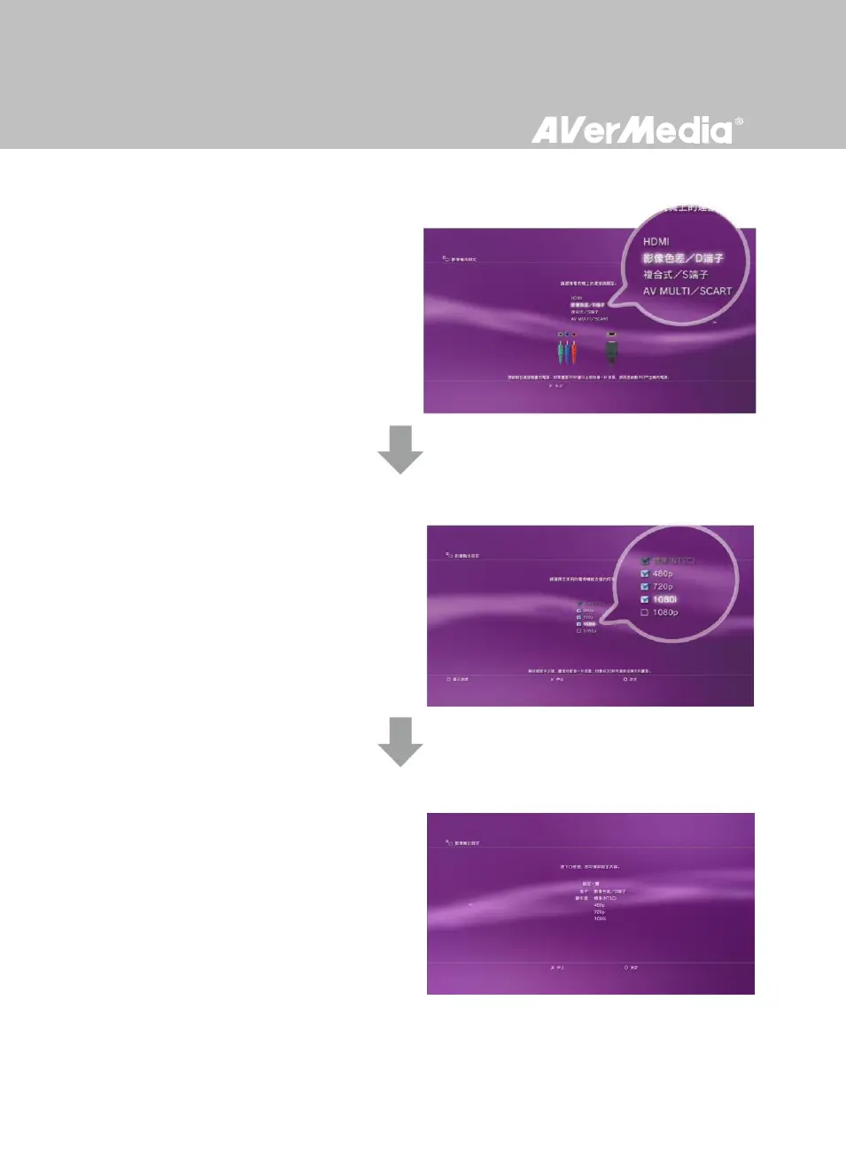 選擇影像色差端子/D 端子並確認。確認後電視將