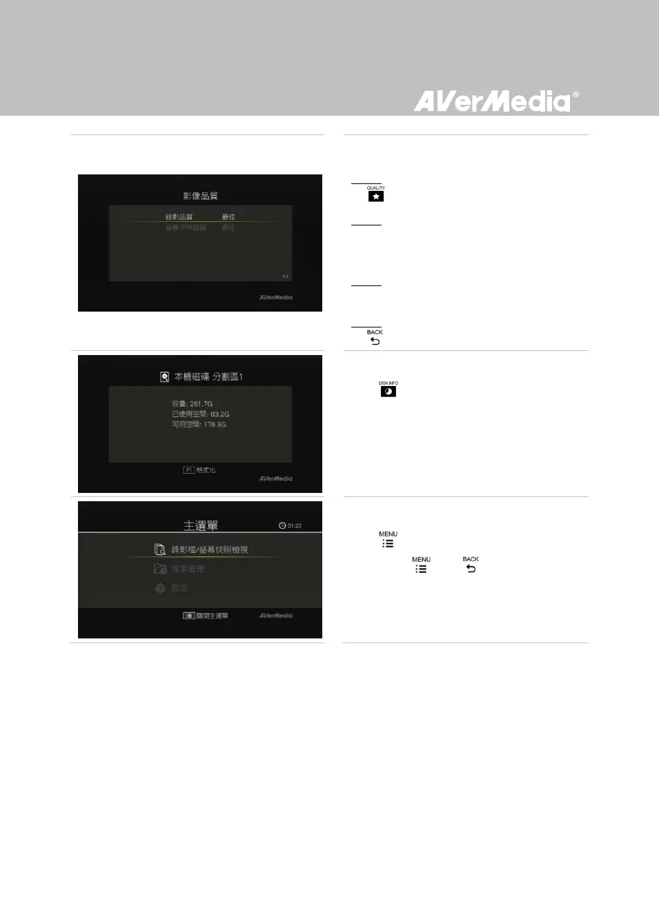 使用 / 選擇錄影品質螢幕快照品質
