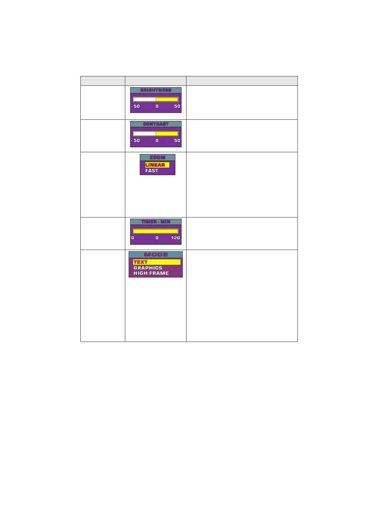 Main Menu Sub-Menu OSD Description