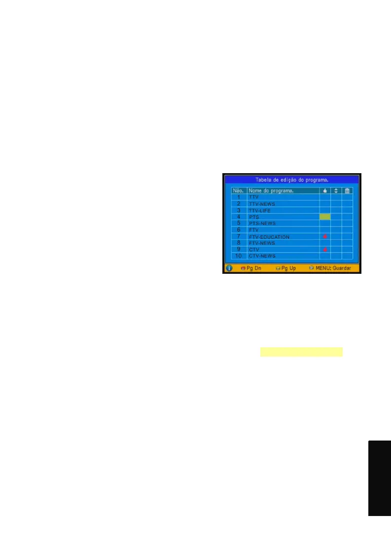 Pode definir os seus programas favoritos, colocar os programas pela ordem