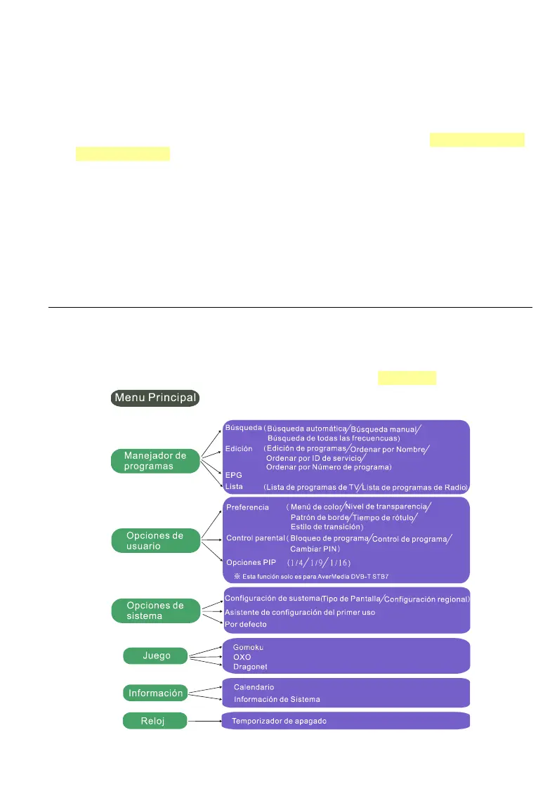 Esta sección explicará el menú principal, los submenús y las opciones de