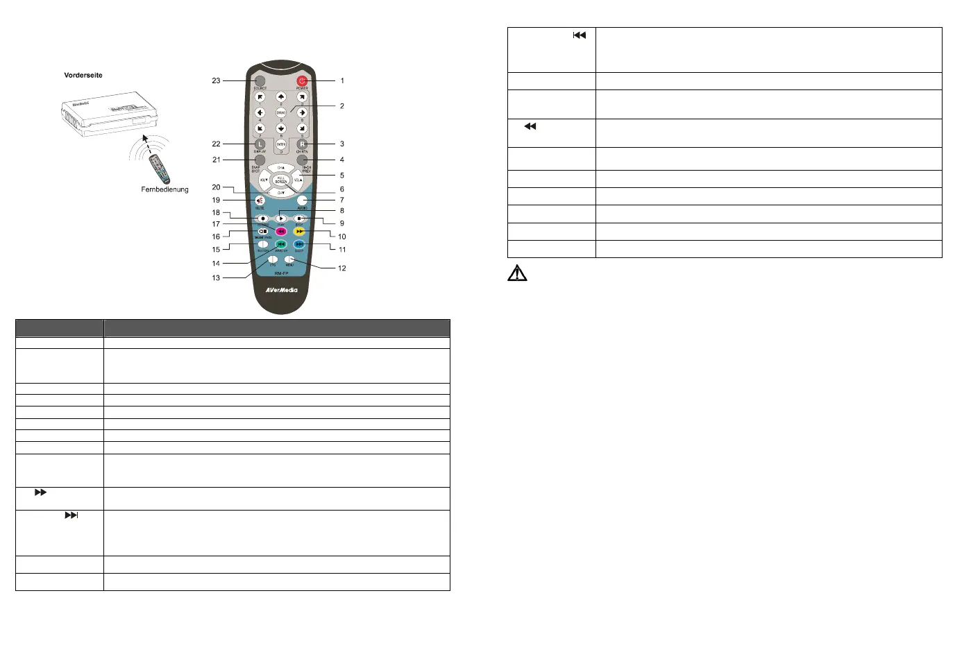 - Entfernen Sie die Batterie aus der Fernbedienung, wenn dieses über einen längeren Zeitraum