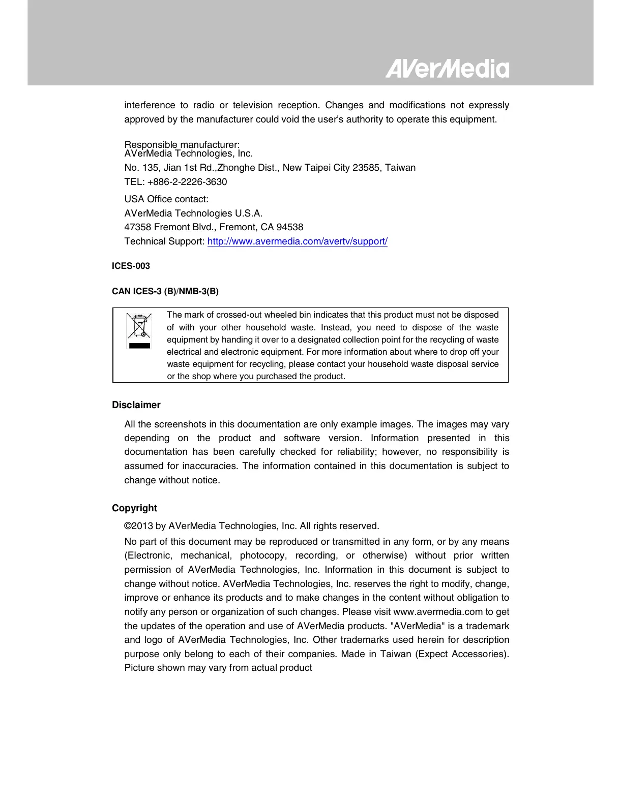 ©2013 by AVerMedia Technologies, Inc. All rights reserved.