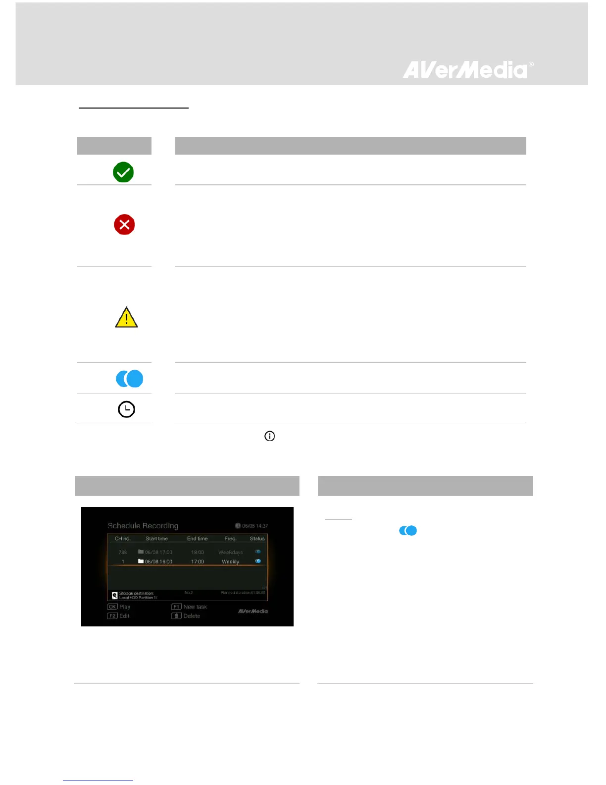 *Failed or unfinished tasks are marked with . Select the schedule and press OK on the remote