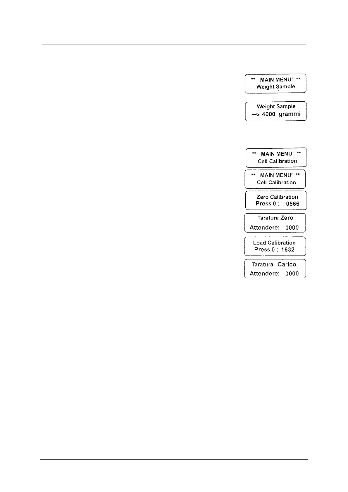 Cell calibration: it allows to calibrate the loading cell