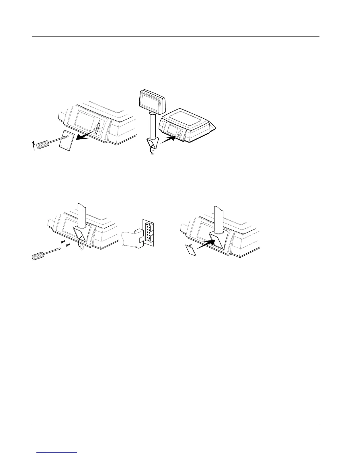 3. Attach the display using the two slotted screws. Carefully insert the plug from