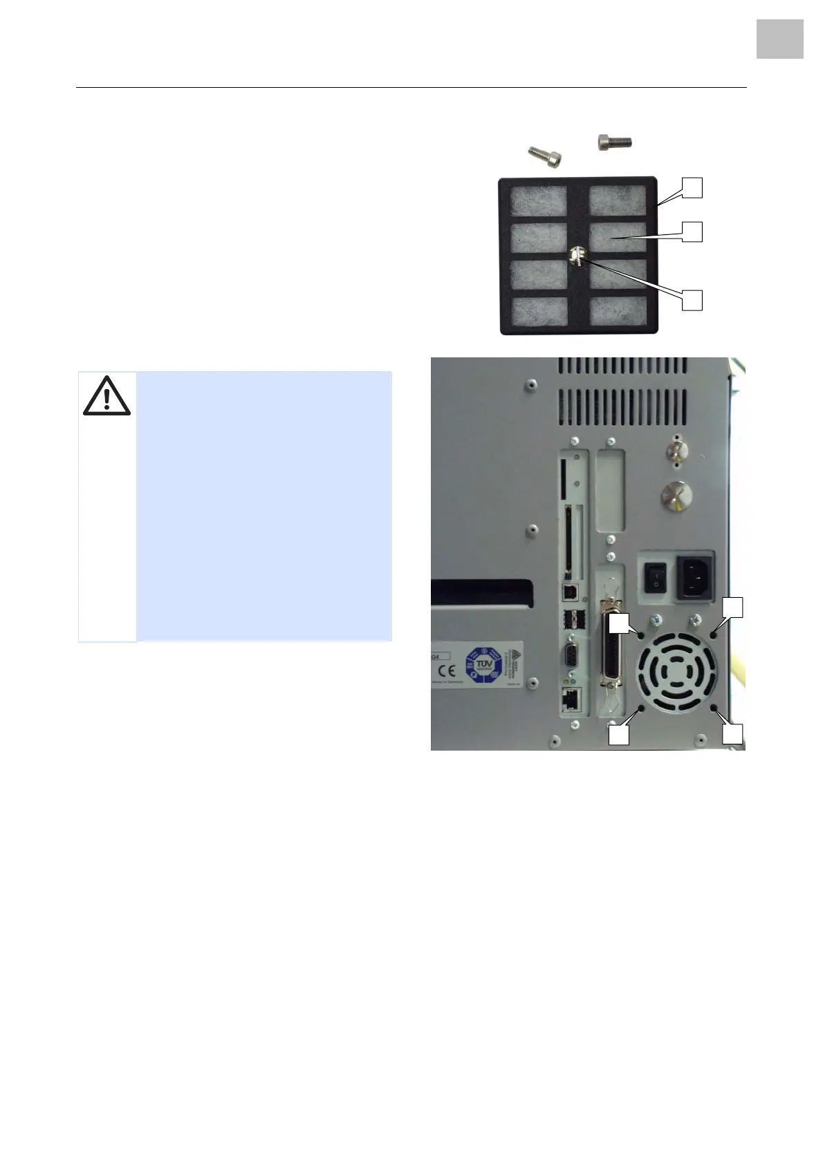 type is installed. The dust filter must not