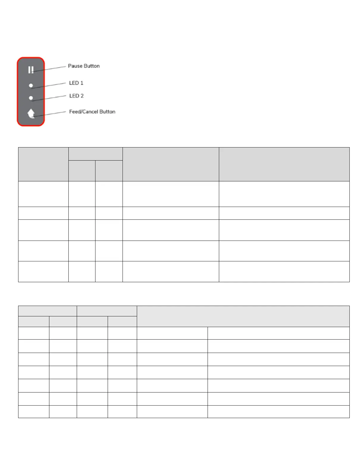 The printer’s control panel consists of two buttons and two LEDs.