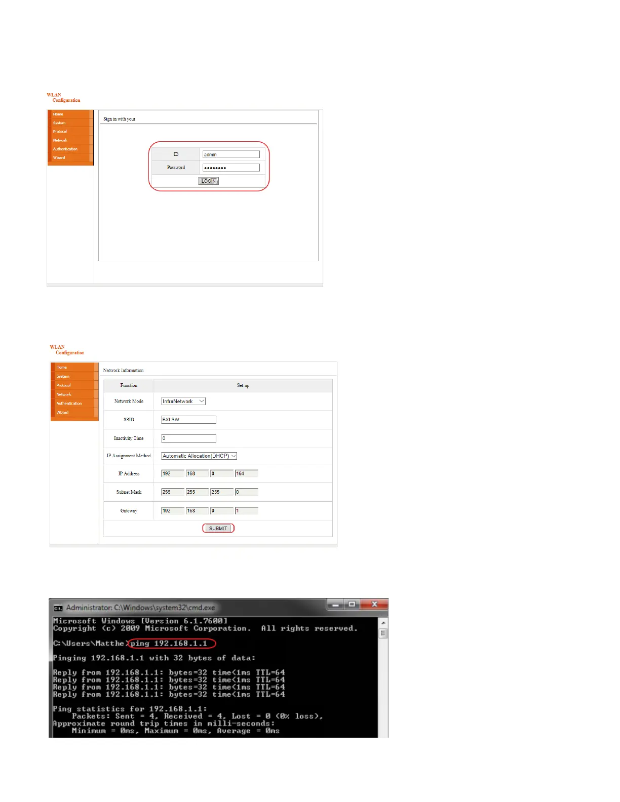6. If prompted to login to change WLAN settings using the web browser, the default ID and password are: