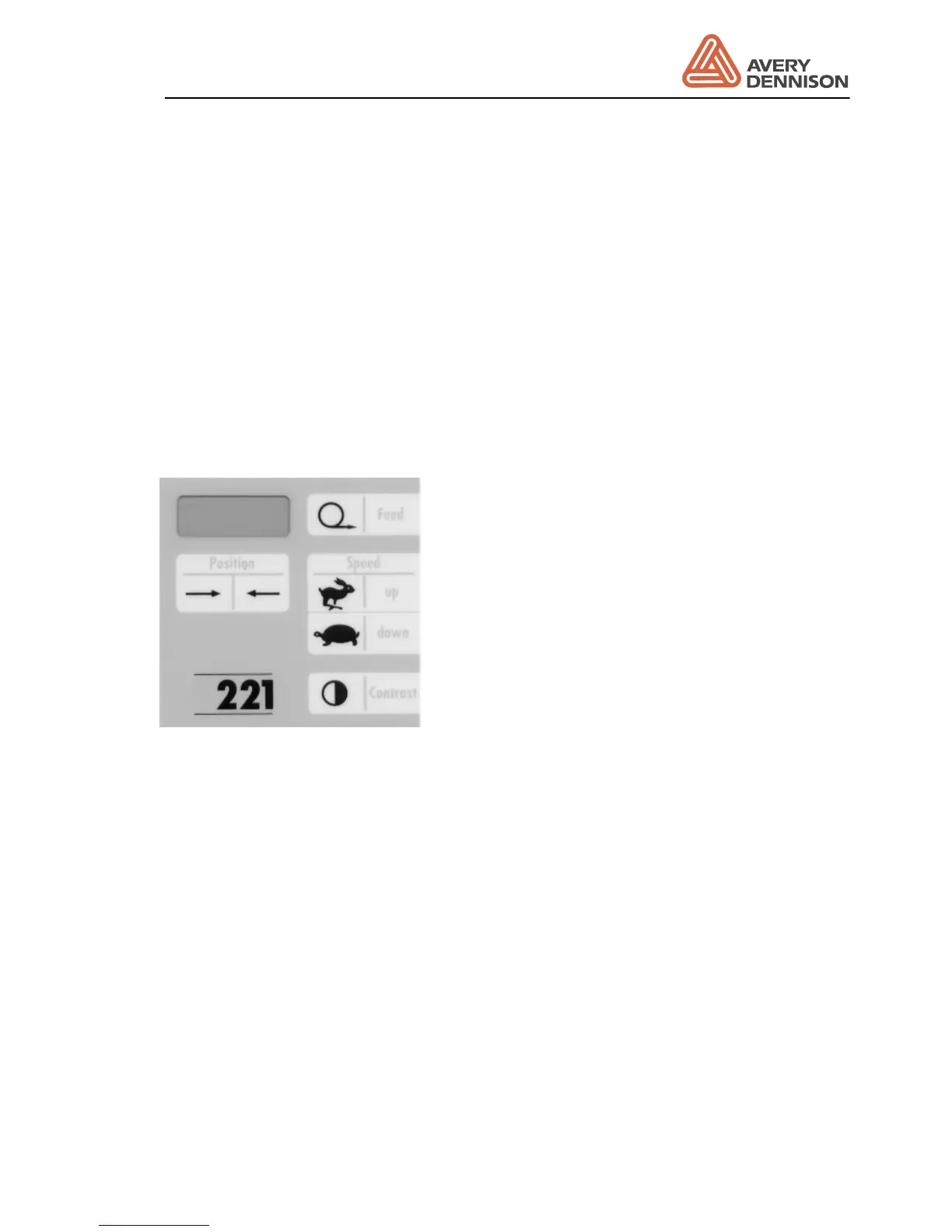 FEED: By pressing this key one label will be dispensed. An error or warning indi-